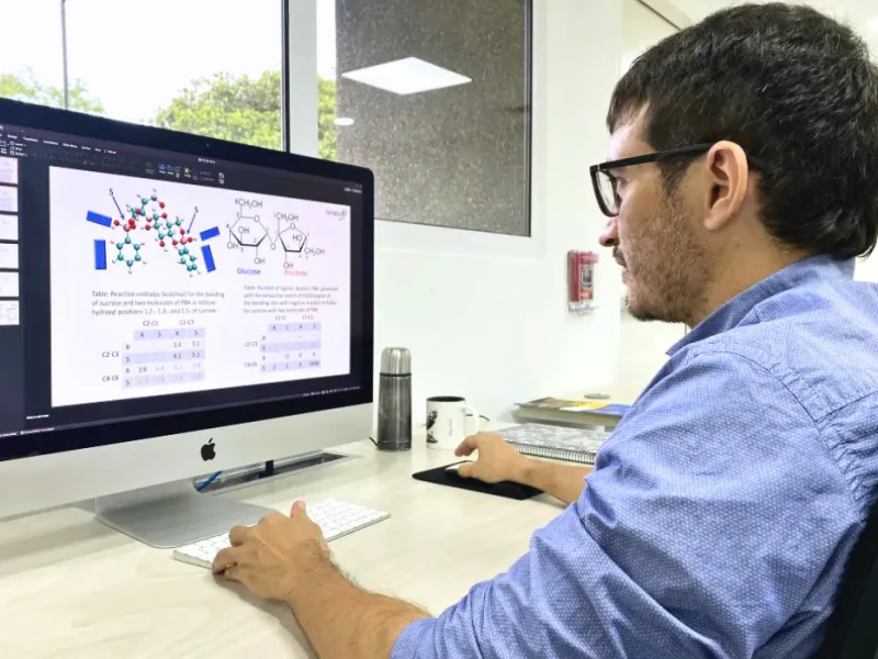 Mediante diseño asistido por computador, fue posible desarrollar unas moléculas que pueden detectar la sacarosa directamente en las plantas, eliminando la necesidad de cortar sus hojas y alterar su crecimiento. Gustavo Adolfo Lara, estudiante del Doctorado en Ingeniería y Ciencias Aplicadas de la Pontificia Universidad Javeriana Cali, junto con su director de tesis, el profesor Andrés Jaramillo, actual director científico e investigador del Instituto iÓmicas; diseñaron unas moléculas tipo "pinzas" (tweezer-like), capaces de medir la sacarosa con alta precisión, diferenciándola de otros azúcares como la glucosa o la fructosa.