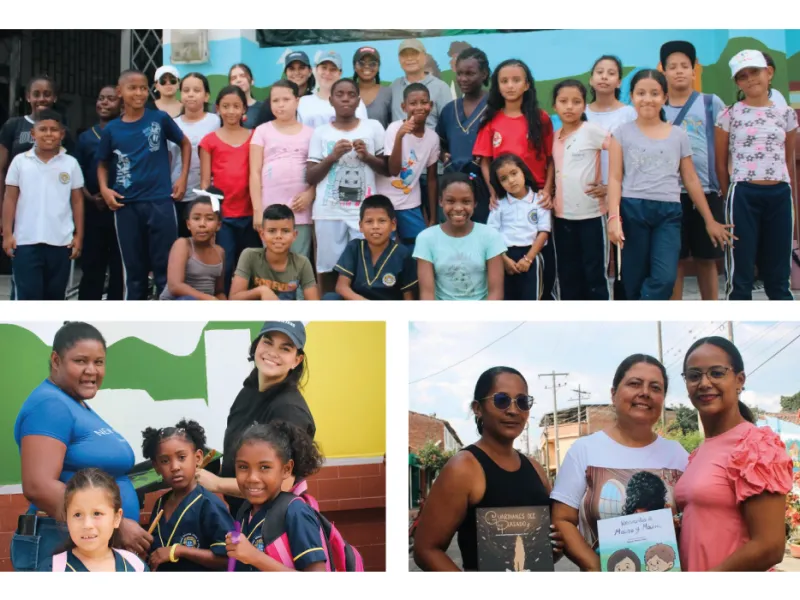 Finalmente, la segunda etapa del proyecto, con la que se cerró todo el trabajo comunitario en la institución, consistió en el diseño y la elaboración conjunta de un mural, creado con la participación de la comunidad. Más allá de embellecer el colegio, el propósito era claro: plasmar en la pared todo el legado y la identidad territorial narrados en los libros ilustrados.